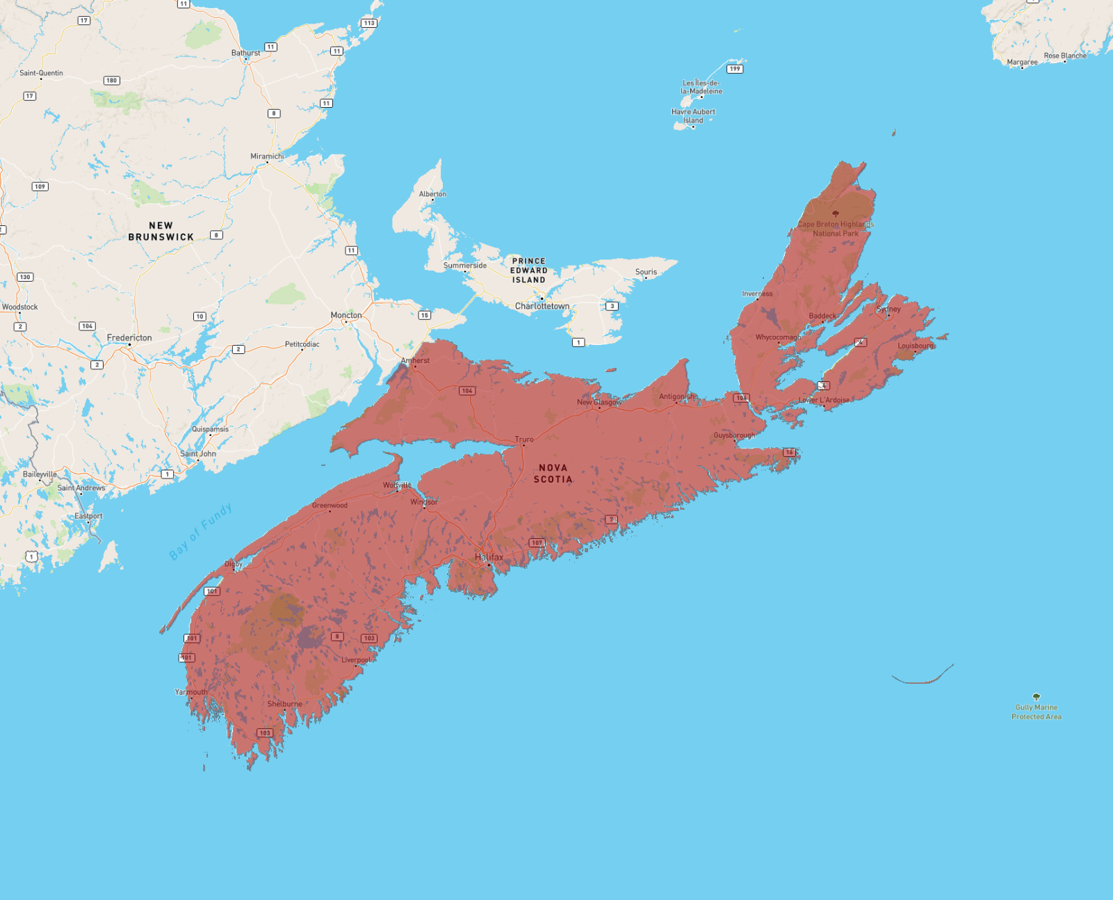 Maps and statistics of Nova Scotia