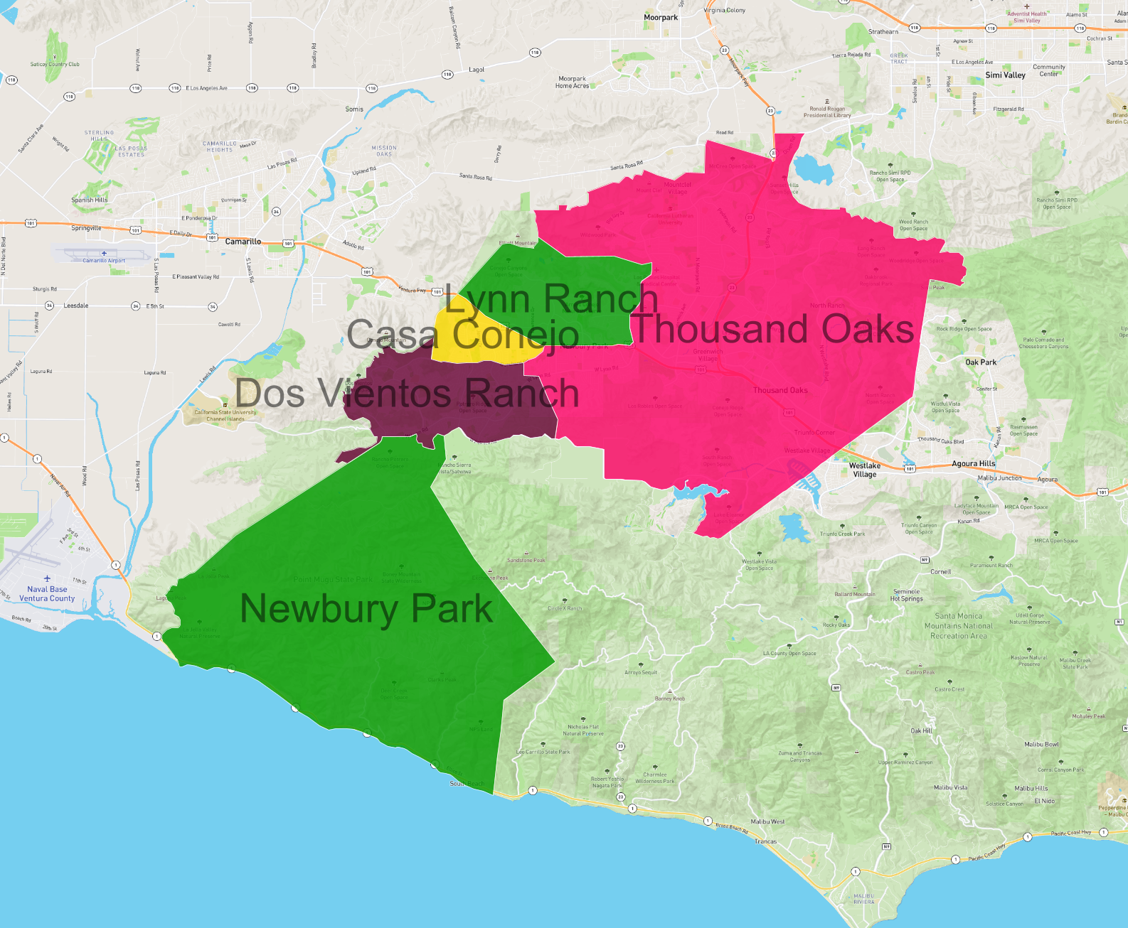 List and Map of the Neighbourhoods in Thousand Oaks